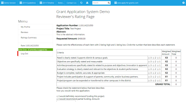 Reports can be generated showing the rankings and grant funds allocated for each approved grant.