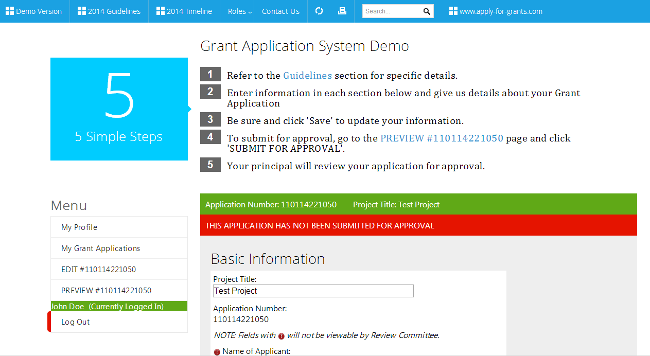 Teachers can create a Grant Application based on district specified criteria: